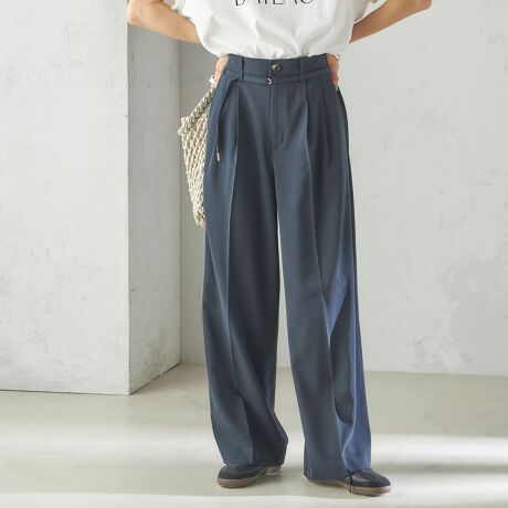 センタープレス入りで美しいシルエットをキープする、2タックのセミワイドイージースラックス。