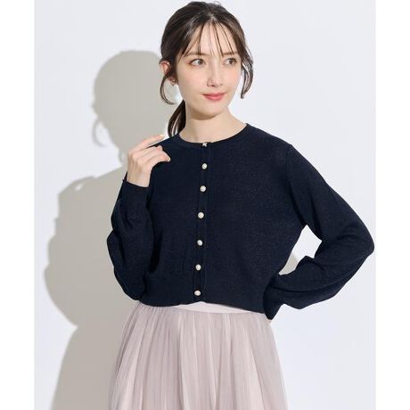 パールボタンコンパクトラメニットカーディガン