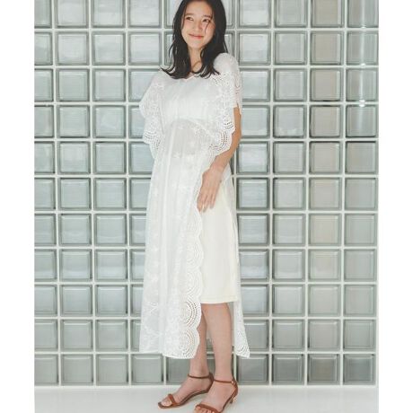 今年らしいスタイルが叶うスカラップレースワンピース。スカラップレースの縁どりが愛らしく、カフタンワンピースのように、ゆったりと被って着られるリラクシーなデザインです。両サイドは開いており、共地リボン紐で結べる仕様。デニムパンツなどを合わせ、エフォートレスな雰囲気でレイヤードスタイルが楽しめます。<詳細>仕様・開閉なし裏地・なし透け感・なし / 光沢・なし / 伸縮性・なし生地の厚さ・普通※モデルの着用画像の場合、光の当たり具合により、実際の色味と異なって見えることがございます。色味は、商品単体の画像をご参照ください。