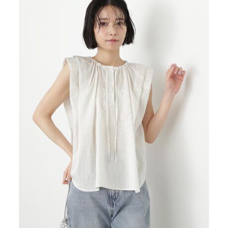 肩先をおおってくれる立体的なタックショルダーがポイントのブラウス。袖はタックを入れており、肩まわりや二の腕をほっそり見せてくれるデザインです。身頃は肌離れするシルエットながら、アウトスタイルも決まりやすいよう、サイドはラウンドカーブ入り。涼しげなストライプ柄をアクセントに、デニムパンツ、シンプルなパンツにも大人な雰囲気で着用いただけます。<詳細>仕様・前ボタン裏地・なし透け感・ややあり / 光沢・なし / 伸縮性・なし生地の厚さ・普通※モデルの着用画像の場合、光の当たり具合により、実際の色味と異なって見えることがございます。色味は、商品単体の画像をご参照ください。