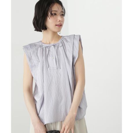 肩先をおおってくれる立体的なタックショルダーがポイントのブラウス。袖はタックを入れており、肩まわりや二の腕をほっそり見せてくれるデザインです。身頃は肌離れするシルエットながら、アウトスタイルも決まりやすいよう、サイドはラウンドカーブ入り。涼しげなストライプ柄をアクセントに、デニムパンツ、シンプルなパンツにも大人な雰囲気で着用いただけます。<詳細>仕様・前ボタン裏地・なし透け感・ややあり / 光沢・なし / 伸縮性・なし生地の厚さ・普通※モデルの着用画像の場合、光の当たり具合により、実際の色味と異なって見えることがございます。色味は、商品単体の画像をご参照ください。