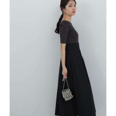一枚でコーディネートを組んだように見せてくれるドッキングワンピース。トップスはコンパクトにまとめた半袖ニット、スカートは太幅で切り替えたウエストラインに、立体的なタックフレアスカートの演出で、存在感のあるシルエットを叶えます。バッグやアクセサリーなどの小物でニュアンスやスパイスをプラスするのもお勧めです。<詳細>仕様・左ファスナー裏地・なし透け感・なし / 光沢・なし / 伸縮性・ニットのみあり生地の厚さ・普通※モデルの着用画像の場合、光の当たり具合により、実際の色味と異なって見えることがございます。色味は、商品単体の画像をご参照ください。