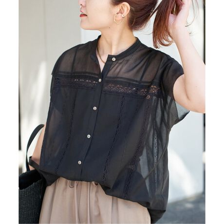 大人っぽいレースが女性らしさをプラスし、スタンドカラーでシャツライクにデザインしているので甘過ぎずに着ていただけます。
