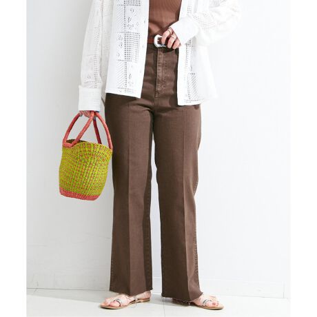 裾は色により、ほどきと裁ち切りになりますが、これにより抜け感が出て今っぽい見え方になっています。ブラウンは、製品の中まで染まらない製品染めをしており、ビンテージ感を後押しする仕上がり。