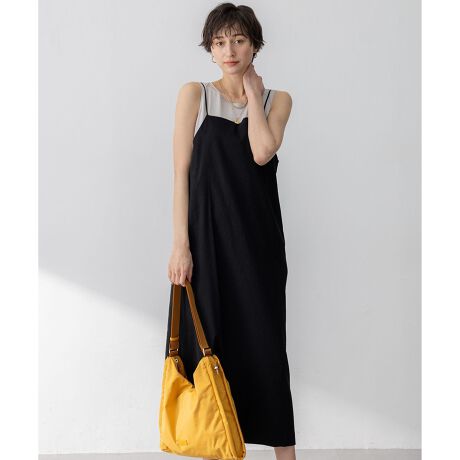 【洗える】リネンレーヨンストレッチ Iライン キャミソール ワンピース