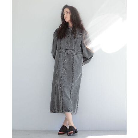 トレンド感あるワークテイストのロングワンピース。タックを入れてフワッとさせたパフショルダーや、メタル釦の上品さも加え女性らしく仕立てました。締め付け感のないゆったりとした着心地も嬉しいポイント。ワンピースとしてはもちろん、ボタンを開けてアウター感覚で羽織るのもおすすめです。透け感[なし]
