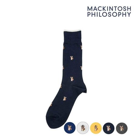 英国を代表する老舗ブランド、MACKINTOSH PHILOSOPHY(マッキントッシュフィロソフィー)のクルー丈ソックスです。シルクハットを被り、ジェントルながらも可愛らしいコーギーが、英国ブランドならではのデザインです。程よい生地感ですっきりと履いていただけます。ギフトにもおすすめのソックスです。
