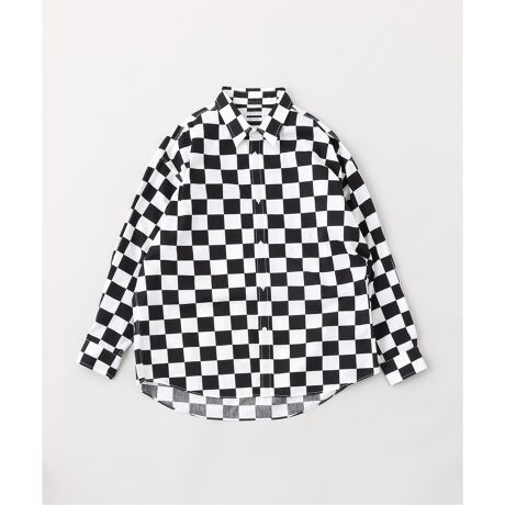 目を引くチェッカーフラッグ柄が特徴的なレギュラーカラーシャツ。