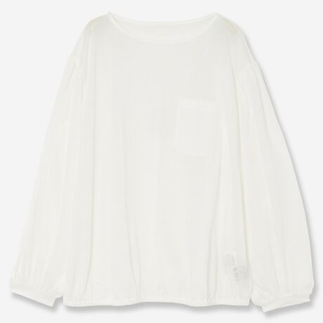 シンプルなデザインなので、一枚で着るときはボリュームのあるパンツやスカートと合わせるのがおすすめ。肌触寒い時はカーディガンやジャケットを合わせたり、ジレを合わせたりと幅広い着回し力を発揮します。