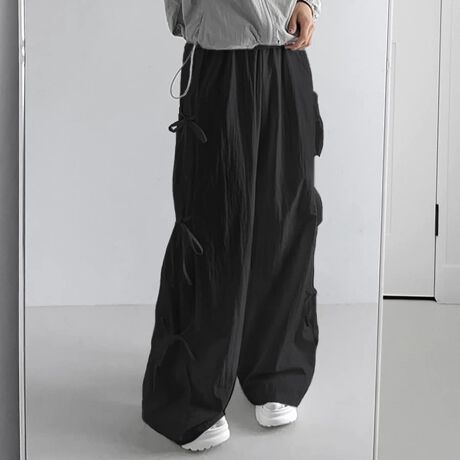 ボーイッシュになりがちなルーズパンツにサイドのリボンでガーリーさをプラス!