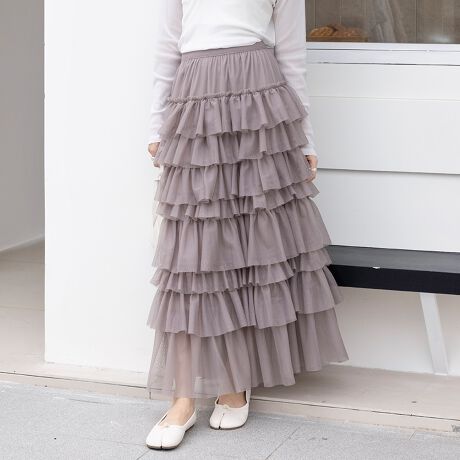 ホイップフリルチュールロングスカート