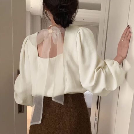 女性らしい美しさを演出するフォルムとゆったりとした袖感でエレガントながらもメリハリのある上品なバックリボン付きブラウスが新登場!