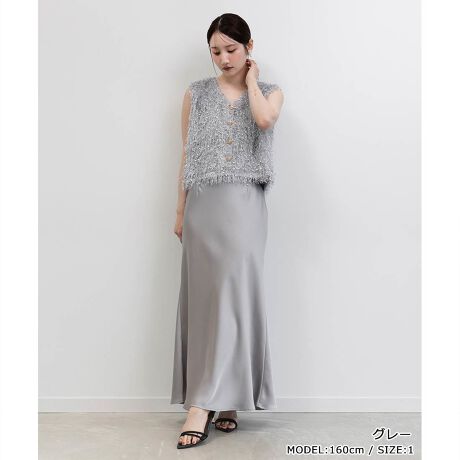 シャギートップス&サテンナロースカートセット