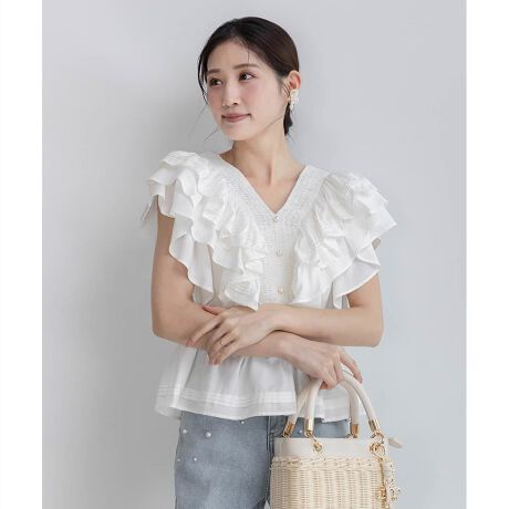 たっぷりのフリルデザインがロマンティックな装いに仕上げてくれるブラウス。