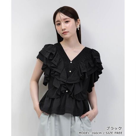 たっぷりのフリルデザインがロマンティックな装いに仕上げてくれるブラウス。
