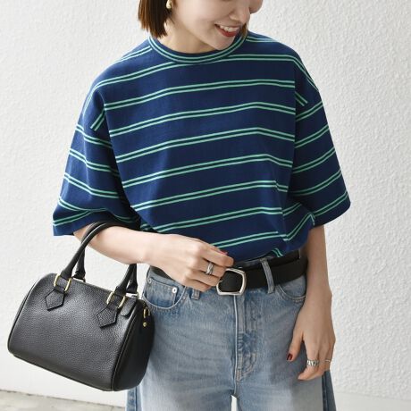 衿元と袖元のリブもあえて同じボーダー柄をあしらい、左脇下にさりげなくブランドネームをワンポイントで施した細部にもこだわったデザインが◎