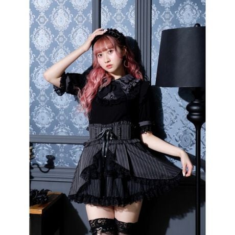 襟に施されたローズレースがゴシックな風合いを演出するカットソー。