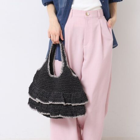 フリルとパイピング配色がポイントのトート。