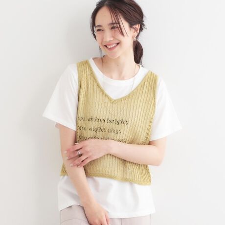 トップスのメッシュベストは、お手持ちのTシャツや、ロンT、シャツなどの上にレイヤードするのもおすすめです。