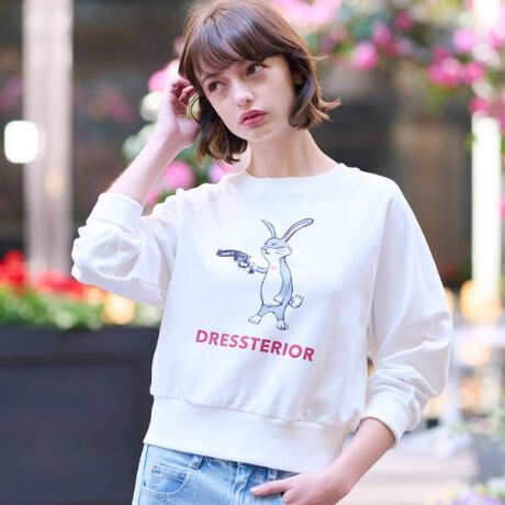 ドレステリアのディレクターが描きおろした、ピストルラビットのデザインがキャッチーで目を惹く印象的な裏毛プルオーバーです。