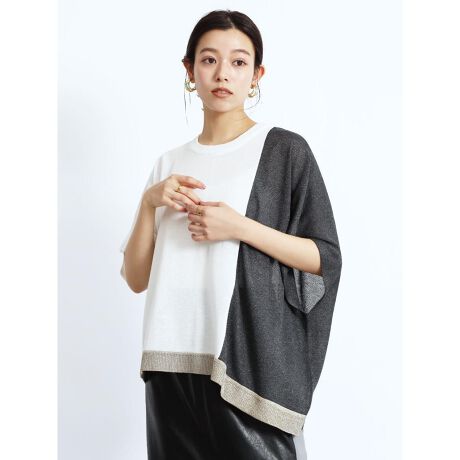 カラーブロッキングデザインが目を惹くプルオーバーニット。