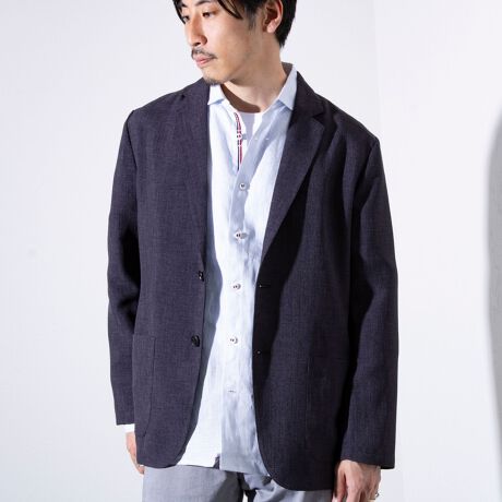 リネンライクなポリエステル糸を使用した生地を採用したジャケット。