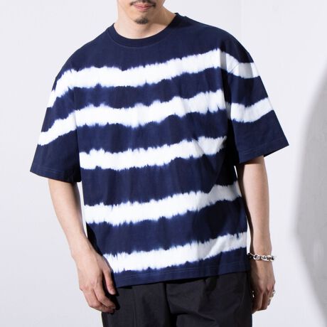 ・ボーダー見えする染め方を採用したクルーTシャツ