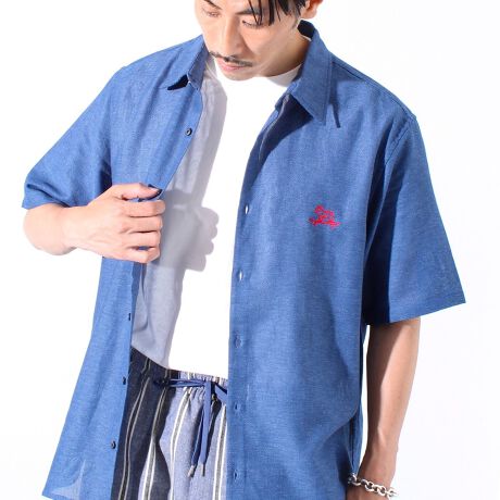 【GLOSTER/グロスター】綿麻パナマ フレブル刺繍 ショートスリーブシャツ 半袖シャツ