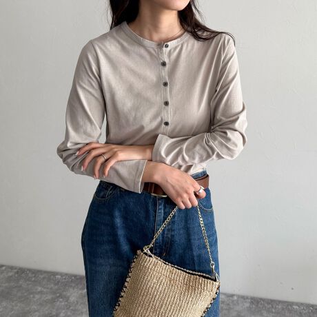 ・1枚でカットソーとしても、前を開けてカーディガンとしても着用できる万能デザイン◎