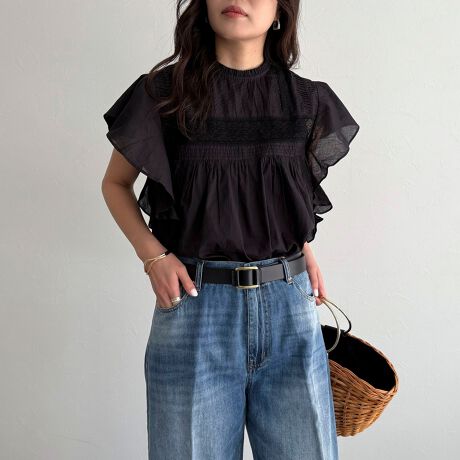 ・デニム合わせはもちろん、イージーパンツやボリュームのあるパンツと合わせたカジュアルダウンした着こなしがオススメです
