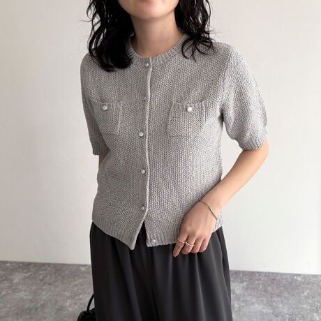 コンパクト目のシルエットが今っぽいテープヤーン半袖ニットジャケット