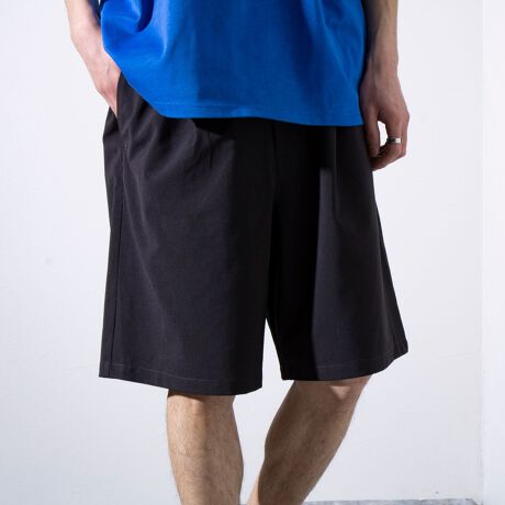 表面は綿糸で編み、裏面を清涼感のあるポリエステル糸「COOLMAX」で編んだ二層構造の吸水速乾生地を使用したショートパンツ。