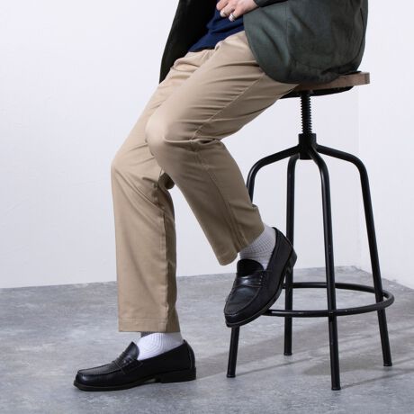 シルエットは細身で裾のおさまりが良いので足元はスニーカー、革靴問わずオールマイティにマッチします。