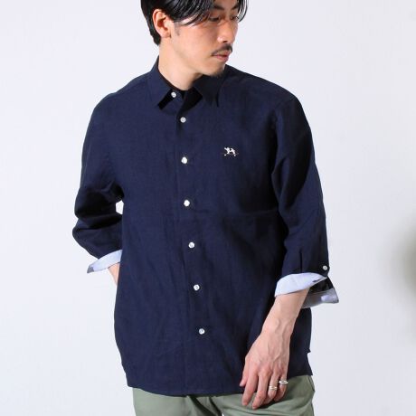 【GLOSTER/グロスター】フレンチブルドッグ刺繍 リネン 7分袖シャツ