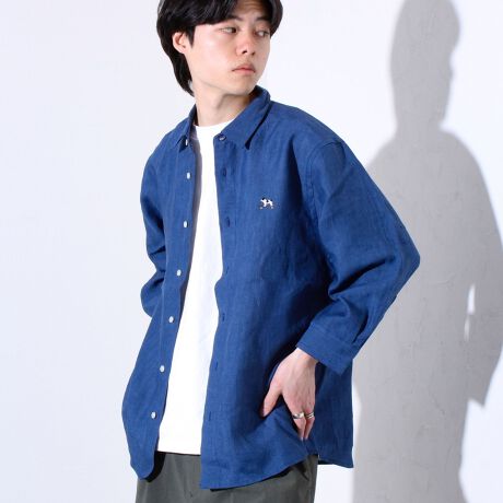 【GLOSTER/グロスター】フレンチブルドッグ刺繍 リネン 7分袖シャツ