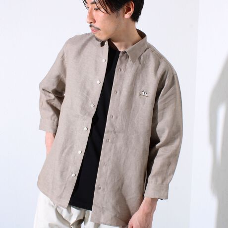 【GLOSTER/グロスター】フレンチブルドッグ刺繍 リネン 7分袖シャツ