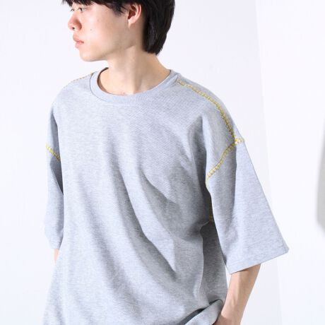肩と袖部分に施された配色ステッチがアクセントのリラックスTEE