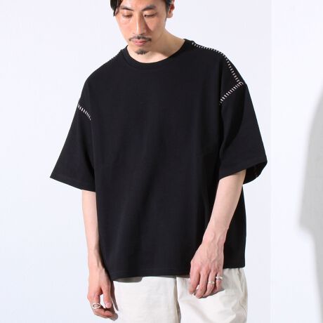 肩と袖部分に施された配色ステッチがアクセントのリラックスTEE