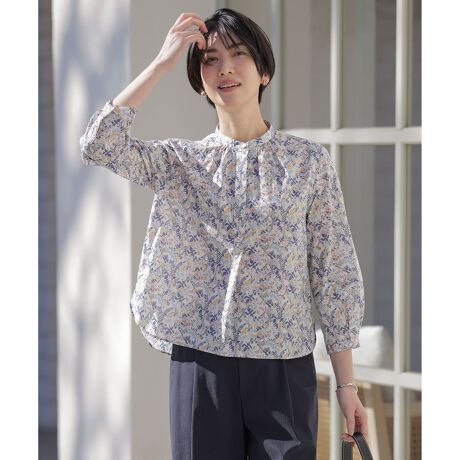 リバティー柄で春を彩る!袖口のデザインがポイントのバンドカラーブラウス