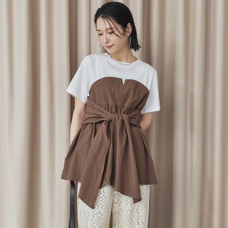 ・Tシャツにペプラムビスチェを重ねたデザインが新鮮