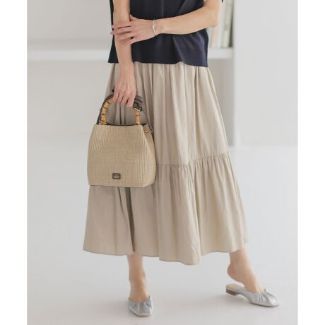 ■デザイン分量感のあるロング丈のティアードスカート。前後ウエスト部分はゴムにしており、サッと穿けるのも魅力。キレイめにもカジュアルにもコーディネートできる汎用性の高いアイテムです。切り替えの位置もスタイルが美しく見える高さにしているのもポイントで、女性らしい春のスタイリングを楽しめます。