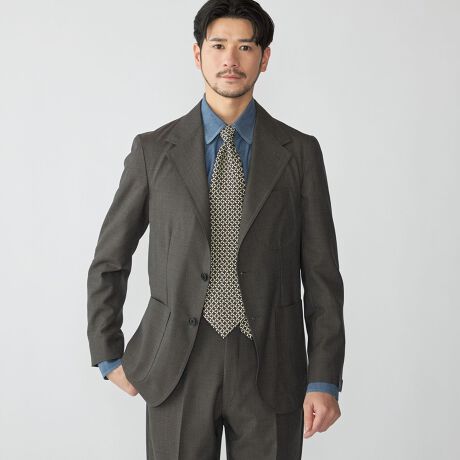 また軽快な仕立てのジャケットなので、ニットポロやクルーネックと合わせたノーネクタイのスタイルもおすすめです。