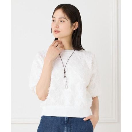 ■デザイン菱形の柄をカットしてフリンジを表現した、とても華やかなニットプルオーバー。インパクトのあるフリンジデザインですが、極細の糸を使用している為、繊細な印象に仕上がっています。やや短めの着丈とほどよいボリューム感で、絶妙なトレンド感を楽しめます。■素材極細で繊細、かつ微光沢がありエレガントでドライタッチな素材です。繊維自体の柔らかさと清涼感に優れているだけでなく、通気性、吸湿性にも優れており、暑い夏でもさらっと快適に着用いただけます。・水洗い可