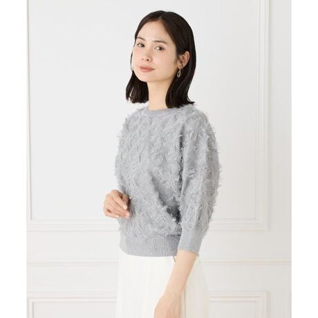 ■デザイン菱形の柄をカットしてフリンジを表現した、とても華やかなニットプルオーバー。インパクトのあるフリンジデザインですが、極細の糸を使用している為、繊細な印象に仕上がっています。やや短めの着丈とほどよいボリューム感で、絶妙なトレンド感を楽しめます。■素材極細で繊細、かつ微光沢がありエレガントでドライタッチな素材です。繊維自体の柔らかさと清涼感に優れているだけでなく、通気性、吸湿性にも優れており、暑い夏でもさらっと快適に着用いただけます。・水洗い可