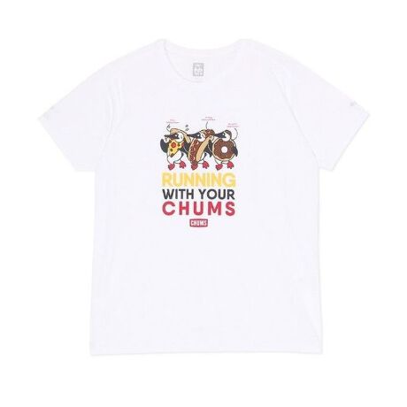 CHUMSが手掛けるランニングシリーズ。ポリエステル100%のメッシュ組織の生地を使った吸水速乾性の高いTシャツです。ラグランスリーブで肩の縫い目あたりを軽減しています。脇の切り替えは少し後ろにずらす事でランニング中のボディサイドの擦れを無くしています。仮装ランニングをイメージしてデザインしました。ブービーがドーナツ・ホットドッグ・ピザに仮装して一生懸命走っています。食べ物のカロリーに合わせてランニングの距離が記載されており、それに伴ってブービーの表情が変わっているのがポイントです。