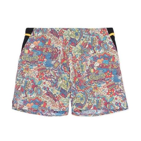 CHUMSが手掛けるランニングシリーズ。撥水加工を施したストレッチナイロン生地を使ったランニングショーツです。凹凸感のある生地表面は肌離れの良い快適な着心地を提供します。股下は約14cmで最も汎用性の高い丈にしています。腰回りにはパワーメッシュを使った大きなポケットを配置し収納力を高め、ランニングに必要な小物を収納できます。後ろ腰にはケータイ等を収納できるファスナーポケットをつけランニング中も揺れて邪魔になりにくい様に設計しました。裾端には長めのスリットを入れ足上げしやすいようなデザインになっています。後ろ裾にはブービーフットモチーフのリフレクタープリントを配置し夜間のランニング中の安全を守ります。
