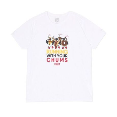 CHUMSが手掛けるランニングシリーズ。ポリエステル100%のメッシュ組織の生地を使った吸水速乾性の高いTシャツです。ラグランスリーブで肩の縫い目あたりを軽減しています。脇の切り替えは少し後ろにずらす事でランニング中のボディサイドの擦れを無くしています。仮装ランニングをイメージしてデザインしました。ブービーがドーナツ・ホットドッグ・ピザに仮装して一生懸命走っています。食べ物のカロリーに合わせてランニングの距離が記載されており、それに伴ってブービーの表情が変わっているのがポイントです。