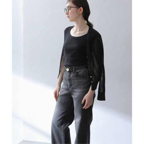 シアー感のあるカーディガンは、適度に肌が透け軽やかな印象に。