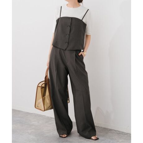 キャミソールはジレ型の前あきのデザインでパンツとのバランス感を考えやや短めデザイン。