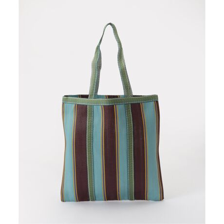それぞれストライプ柄の幅がちがい、雰囲気のある配色になっています。A4サイズが入るデイリーに使いやすい大きさで、マチなしのすっきりとしたバッグです。